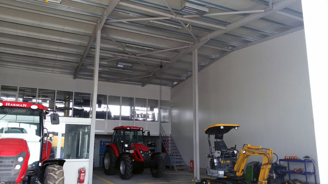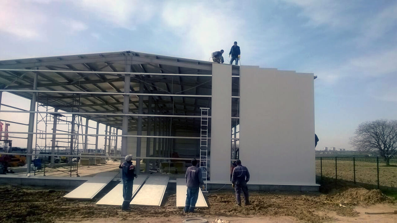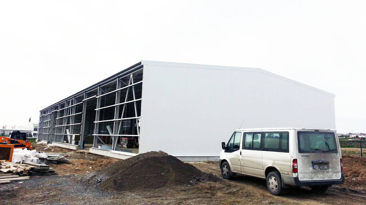 Çelik Yapı Çözümleri Atölye, depo, hangar, bakım alanı. vb. gibi geniş açıklık gerektiren yapılarda çelik yapı çözümlerimiz kullanılmaktadır. Bu tarz yapılarda zati yükler ve çelik hesapları önemlidir. Alanında uzman ve tecrübeli teknik ekibimiz tarafından üretim için çizimleri ve detayları hazırlanan çelik yapıların montajında, yine uzman montaj kadromuz tarafından gerçekleştirilir. Çelik yapılar 20m – 30m-40m-50 m açıklıklarında çoklu bloklar ya da 10 m açıklıkta tekli bloklardan oluşur. Bina yükseklikler 4-5 ya da 6 metre olabilir. İsteğe bağlı yalıtımlı ya da yalıtımsız çözümler uygulanabilir. Yalıtımsız binalarda cephe kaplaması boyalı ya da natürel trapez galvaniz saçtır. Yalıtımlı çelik yapılarda ise Hekim Sandviç panelleri kullanılmaktadır. 50 – 60 – 80 – 100 – 120 ve 150 mm izolasyon kalınlığında üretilen cephe panelleri, gizli vidalı cephe paneli, soğuk oda cephe paneli ve H sistem cephe paneli gibi farklı detaylar şeklinde uygulanmaktadır. Çelik Depo Çelik depolar 20m – 30m-40m-50 m açıklıklarında çoklu bloklar ya da 10 m açıklıkta tekli bloklardan oluşur. Bina yükseklikler 4-5 ya da 6 metre olabilir. İsteğe bağlı yalıtımlı ya da yalıtımsız çözümler uygulanabilir. Yalıtımsız binalarda cephe kaplaması boyalı ya da natürel trapez galvaniz saçtır. Yalıtımlı çelik yapılarda ise Hekim Sandviç panelleri kullanılmaktadır. 50 – 60 – 80 – 100 – 120 ve 150 mm izolasyon kalınlığında üretilen cephe panelleri, gizli vidalı cephe paneli, soğuk oda cephe paneli ve H sistem cephe paneli gibi farklı detaylar şeklinde uygulanmaktadır. Çelik Hangar Çelik hangarlar 20m – 30m-40m-50 m açıklıklarında çoklu bloklar ya da 10 m açıklıkta tekli bloklardan oluşur. Bina yükseklikler 4-5 ya da 6 metre olabilir. İsteğe bağlı yalıtımlı ya da yalıtımsız çözümler uygulanabilir. Yalıtımsız binalarda cephe kaplaması boyalı ya da natürel trapez galvaniz saçtır. Yalıtımlı çelik yapılarda ise Hekim Sandviç panelleri kullanılmaktadır. 50 – 60 – 80 – 100 – 120 ve 150 mm izolasyon kalınlığında üretilen cephe panelleri, gizli vidalı cephe paneli, soğuk oda cephe paneli ve H sistem cephe paneli gibi farklı detaylar şeklinde uygulanmaktadır.
