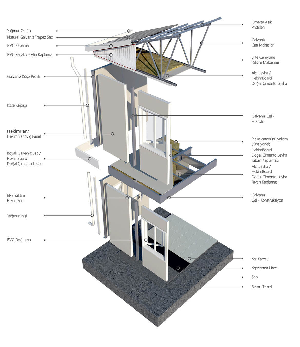 * Boyalı galvaniz sac + EPS + HekimBoard Doğal Çimento Levha